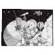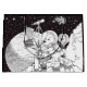 Artist by Zolotareva.Digitally Vector Graphics. cosmos tecknad.Puppy in space an alien with a telescope.