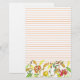 En söt orange fodrade en stationär papper dekorerad med en gräns av blommor och växter som blommar under fallsäsongen i det gyllene färg av gult, orange, rosa och gröntens vattenfärg.
