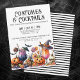 Välkomna gäster till en Halloween-kostym party med den här enkla och skämtsamma inbjudan med en festlig vintage-inspirerad vibe. Designen har en tryckt svart bakgrund med orange och vitt typsnitt i en blandning av ornat och serif stilar för ett klassiskt gammalt utseende. Typografin har en subtil grym effekt på ge och på extra eerie charm. Överst anger frasen "Costumes & Cocktails" tonen för en vuxna-endast-natt för roligten - perfekt för en 21+ Halloween firande. Party-detaljerna är centrerade under för enkel läsning. Längs grund har en färglös och festlig Halloween-scen förstörda cocktails, candy, jack-o'-lanternpumpor, en häxhatt, skalle, fladdermus och andra party-accenter som ska föra in roligten säsong. Baksidan har ett rött svart och vitt rand mönster, som du kan anpassa genom att ändra rand eller bakgrunden till färg - eller båda - för att matcha ditt party-vibe. Ett val av roligt och snyggt för en Halloween-sammankomst med drycker, kostym och pooky charm. Inbjudningskostnader för halloween fest och locksvans 21+ Vuxen Halloween Black Orange White Cocktails Candy Pumpkins Döskallar Fladdermus. Du kan skicka e-post eller skriva ut lokalt som en utskriven inbjudan eller en hämtningsbar digital fil.