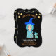 Kostym födelsedagsinbjudan med stjärnmönster på svart bakgrund på baksidan. Perfekt för födelsedagar och Halloween-firande. All text och alla nummer är redo att anpassas. Att födas i oktober... det är fantastiskt... du kan ha en kostumefest!