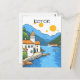 Cute seaside view inspired by Kotor, Montenegro. This illustrative postcard is great for those who travel to Kotor, Montenegro.