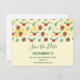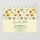 Spara datumet vykort med ett sött mönster med kottar och jullyr på en gul akvarell bakgrund med små vita cirklar utspridda runt omkring.