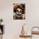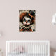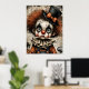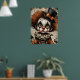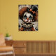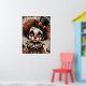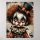 Krackad karnival - Melancholy Masqueraden Poster ett sorgligt clown-barn svälter genom ihåligt ögon, dess blek ansikte målad med dramatisk svart smak och ett frakturerat uttryck. Frizzy auburn spiller från ett svart top hat med en orange och ett fläckigt ramar i vintagen kostrum i avklädda skuggor av orange och blått. Området kring figur är gigantiska pumpor och åldrasens textfragment, som framkallar en hemsökt nostalgi. Sammansättningen humrar med känslomässigt djup och elegans - där stollig möter trötthet, och varje spricka visar en historia.