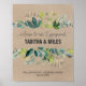 Denna kraft blad välkomstskylt för engagemangsfest är perfekt för en rustik bröllop. Designen har en ram av gröna blad och lövrika botaniska växter på en falsk kraftpapper bakgrund.