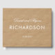 Den här eleganterna gästen bok har en papper brunkraftbakgrund med namn och bröllop-datum i vitt.