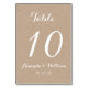 Bordsnummer-kort för elegant White Script Bröllop | Beige Kraft Papper. Elke Clarke© for MonogramGallery at Zazzle. Tryckt papper fotoeffekt. Lägg till bordsnumret och lägg sedan till "1" i kundvagnen. Upprepa sedan genom att lägga till siffran "2" till kortet och lägg sedan till "1" i kundvagnen och upprepa den tills du har ett kort med vart och ett av bordsnumren i kundvagnen.