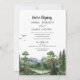 Bjud in dina nära och kära att fira din vigselfirande med denna rustika Rocky Mountain-inbjudan till mottagning. Med en vacker målad naturlandskap med akvarelltall, flygande fåglar och majestätiska berg, är designen placerad mot en falsk ljus kraftpapperbakgrund för en naturlig och utomhuspräglad känsla. RSVP-kort finns tillgängliga separat.