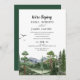 Bjud in dina nära och kära att fira din vigsel med denna rustika Rocky Mountain-receptions inbjudan. Med en vacker målad naturlandskap med akvarelltallträd, flygande fåglar och majestätiska berg, är designen placerad mot en falsk ljus kraftpapper bakgrund för en naturlig, utomhus känsla. RSVP-kort finns tillgängliga separat.