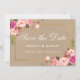 Kraft Watercolor Blommigt Rosa Guld Spara datumkort för Förlovning