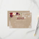 Kraft Rustic Bröllop String Ljus Mason Burk Snöre Watercolor Burgundy Blommigt OSA kort med val av måltider