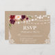 Kraft Rustic Bröllop String Ljus Snöre Watercolor Burgundy Blommigt OSA kort