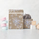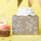 En helgdag av neutralt som omsluter papper med en färgad av rustik kraft papper med en mönster av handritat vattenfärgsmålat blåvitt snöflingor.