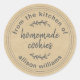 Kraft Rustic Hemlagade Kakor-etiketten har en varm kraft-stil bakgrund med mjuk kolgrå bokstavsstil och enkla botaniska accenter för en inbjudande handgjord look. Perfekt för kakburkar, godsaker påsar, krukor och presentförpackningar för hemlagad mat, lägger denna runda dekalj till en charmig personlig touch till dina bakverk. Idealiskt för stugbakar, present till jul, bondmarknader och “från mitt kök” förpackningar.