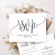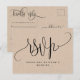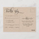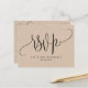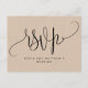 Vacker kraftstils-RSVP-postkort för alla speciella tillfällen. Kraftstilsbakgrund på både framsida och baksida. Användning av vacker modern handskriven kalligrafi och blocktypografi genomgående, vilket gör detta postkort unikt. Lägg till datum och detaljer för RSVP på baksidan. Möjlighet att lägga till måltidsval eller använda textområdet för att anpassa postkortet med ett unikt meddelande till dina gäster. På höger sida finns ett område där du kan lägga till ditt/dina namn och adress dit RSVP ska skickas. Framsidan har en stor "RSVP" i kalligrafi med utrymme nedanför för att lägga till ditt/dina namn och evenemang. Del av vår "Kraft Modern Rustic Fine Calligraphy Kraft"-samling med en mängd olika matchande produkter tillgängliga.