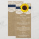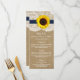 Kraft-, snöre- och solrosinsamlingen är en bedövande utformning med en vacker, strålande papper Kraft-effektbakgrund med en romantisk vintage vit snöre-effektstam avslutat med en bedövande solros och en marin blåfärgseffekt. Dessa menyer kan vara personligen för ditt särskilda tillfälle och skulle göra perfekten till menyer i bröllop, möhippor, förlovningsfest-menyer, födelsedagsfest-menyer och mycket, mycket mer. *Observera att Zazzle endast säljer tryckta produkter så att det här objektet inte har något egentligt snöre, solrosmaterial eller ribbonmaterial. VISA MATCHNINGSOBJEKT FÖR DENNA SAMLING