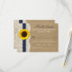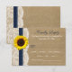 Kraft-, snöre- och solrosinsamlingen är en bedövande utformning med en vacker, strålande papper Kraft-effektbakgrund med en romantisk vintage vit snöre-effektstam avslutat med en bedövande solros och en marin blåfärgseffekt. Dessa OSA kort kan vara personlig för ditt särskilda tillfälle och skulle göra perfekten till att sätta in kort för alla rustiska bröllop, möhippa, förlovningsfest, födelsedagsfest och mycket, mycket mer. *Observera att Zazzle endast säljer utskrivna inbjudningar så dessa inbjudningar saknar äkta snöre, solrosmaterial eller ribbonmaterial.