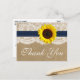 Kraft-, snöre- och solrosinsamlingen är en bedövande utformning med en vacker, strålande papper Kraft-effektbakgrund med en romantisk vintage vit snöre-effektstam avslutat med en bedövande solros och en marin blåfärgseffekt. De här vykorten kan vara personlig för ditt särskilda tillfälle och skulle göra perfekten till ett tack för bröllop, möhippa, förlovningsfest, födelsedagsfest och mycket, mycket mer. *Observera att Zazzle endast säljer tryckta vykort, så dessa tackkort har inga riktiga snöre-, solros- eller bandmaterial. VISA MATCHNINGSOBJEKT FÖR DENNA SAMLING
