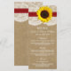 Kraft-, snöre- och solrosinsamlingen är en bedövande utformning med en vacker, strålande papper Kraft-effektbakgrund med en romantisk vintage vit snöre-effektstam avslutat med en bedövande solros och en röd bandeffekt. Dessa menyer kan vara personligen för ditt särskilda tillfälle och skulle göra perfekten till menyer i bröllop, möhippor, förlovningsfest-menyer, födelsedagsfest-menyer och mycket, mycket mer. *Observera att Zazzle endast säljer tryckta produkter så att det här objektet inte har något egentligt snöre, solrosmaterial eller ribbonmaterial. VISA MATCHNINGSOBJEKT FÖR DENNA SAMLING