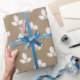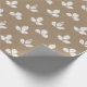 En papper rustik Kraft med en mönster av vit, tre läppade klöver mot en bakgrund av Kraft färg.