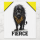 Dessa etiketter har en lejon bild på dem och de säger "Fierce" på dem.