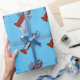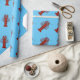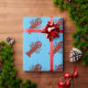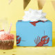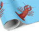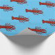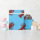 Kräfta som slår in pappra designade ljusa röda kräftor på en blåttbakgrund.