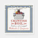 Denna blå och gulda kräftbajsnäsduk kan anpassas till ditt speciella evenemang. Med en teal bakgrund med gulda pärlor och kräftor är denna design perfekt för din förlovningsfest, examen, födelsedag eller något evenemang du kanske är värd för. De serieillustrerade kräftorna tillsammans med strängljus på framsidan ger en extra rolig touch till de serif- och handskrivna typsnitten. Ordet "kräftor" kan också anpassas till vilken "bajs" du än har, inklusive skaldjur, hummer, krabba osv, och meddelandet och namnen kan också anpassas till ditt evenemang.