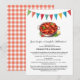 Upptäck den perfekta blandningen av sydstats charm och rustik allure med vår inbjudan till kräftskiva för par. Denna underbara inbjudan visar en fantasifull illustration av kokta kräftor, kompletterad med en rustik festlig vimpel i bakgrunden och ett charmerande rött rutigt dukmönster. Den lekfulla men eleganta designen sätter scenen för en minnesvärd firande av kärlek.
