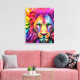 Kraftfull Lejon "Defender", färgstark Abstrakt kri Canvastryck