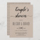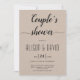 Duschinbjudan med kurvskript med kalligrafi av kraftskorpan i bröllop par. Baksidan innehåller ett svart geometriskt mönster på brunkol stil pappert.
