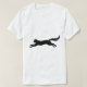 Dynamisk svart katt silhuett som fångar en elegant katt i full galopp, med utsträckta tassar och en strömmande svans för en minimalistisk design med hög energi. Denna skarpa vektordesign lyser på t-shirts, klistermärken och kläder, perfekt för kattfantaster som vill ha modeny stil med rena kontraster.