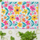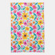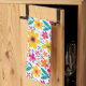 En kökshandduk prydd med kraftiga, färgglada blommor i varma gula, rosa, röda och turkosa nyanser som ger glad, modern charm till vardaglig matlagning och köksdekor. En stilren och presentklar accent för älskare av ljusa blommor och uppiggande heminredning.