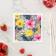 Kraftiga Gult- och Rosa-blommor på Grått Pappersservett