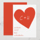 Meddela din stora dag med detta charmiga och moderna "Save the Date"-kort med ett djärvt rött hjärta och personliga initialer, perfekt för par som älskar enkla men hjärtliga designs. Den varma och inbjudande färgpaletten och den handskrivna textstilen skapar en personlig touch som speglar er kärlekshistoria samtidigt som den ger de viktigaste detaljerna för er speciella dag. Oavsett om ni planerar ett chic stadbröllop eller en mysig fest, kommer denna design att säkerställa att era gäster markerar sina kalendrar med förväntan!