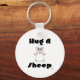 Detta söta, jättelika, vita får med texten "Hug A Sheep" skriven i svart text.