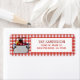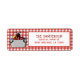 Den här söta kräftkok adressetikett har en söt kräfta som sitter i en kastrull med majs och rödlök. I bakgrunden syns ett picknickduksmönster som passar perfekt till din fiskfest.