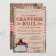 Denna rustika design har en träd bakgrund med rött och vitt band. Ovanpå det är en juteväv texture med en tecknad illustrerad kräfta. Det röda och svarta serif och handskrivna script teckensnitt är helt anpassningsbart till din händelse, oavsett om det är ett kräftkok, hummer, skaldjur eller fisk kok. Fira din förlovning, födelsedag, examen eller någon annan händelse med stil!