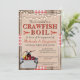 Denna rustika design har en träd bakgrund med rött och vitt band. Ovanpå det är en jute textur med en tecknad illustrerad kräfta. Den röda och svarta serif- och handskrivna skript teckensnittet är helt anpassningsbart till din händelse, oavsett om det är en kräftkokning, hummer, skaldjur eller fiskkokning. Fira din förlovning, födelsedag, examen eller någon annan händelse i stil!