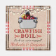 Denna rustika design har en träd bakgrund med röd och vit picknick duk stil band. Ovanpå det är en jute textur med en söt tecknad kräfta. Det röda och svarta serif- och handskrivna typsnittet är helt anpassningsbart till din händelse, oavsett om det är ett kräftkok, hummer, skaldjur eller fiskkok. Fira din förlovning, födelsedag, examen eller någon annan händelse med stil! Dessa gör fantastiska souvenirer för festen!