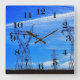 Fotografera av 3 torn för kickspänningskraftledning mot blå himmel nära den fortRandall fördämningen, South Dakota.