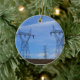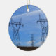 Fotografera av 3 torn för kickspänningskraftledning mot blå himmel nära den fortRandall fördämningen, South Dakota.