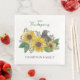 Kråka för Thanksgiving i solblommor Pappra middagsblöjor. I höst ställer du in bord med dessa snygga blöjor med en ursprunglig vattenfärgsmålning av en svart kråka sitta i en blomsterträdgård. Ljusa gulter solblommor ge den här designen är en festlig och säsong cheer. Perfekt för Thanksgiving- och Fall-evenemang! Lägg till din familj namn, år och händelse (eller lämna som Thanksgiving) för ett helt unikt tillägg till bord-inställningen i år!