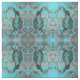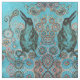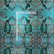 målning av en stor svart kråka på en blåttbakgrund med en rosa och guld- paisley cirklar pricker mönster.