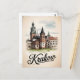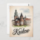 Ta ett steg tillbaka i tiden med det här charmerande vykortet för vintage som visar Krakows historiska stad. Med symbolmärken som Main Market Square och Wawel Castle framträder rikens kulturarv och den tidlösa skönheten i en av Polens mest uppskattade städer. Perfekt för resenärer, samlare och älskare av klassisk europeisk konst.