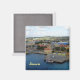 Harbour side view of Kralendijk, huvudstaden i Bonaire. Åsikten sträcker sig från det blå vatten i Karibiens hav- och regeringshus till den rullande grönten backe utanför. Bonaire, en av ABC-öarna, är populär hos dykare och snorkeler, liksom en önskvärd kryssningsdestination.
