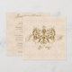 Denna klassiska inbjudan skapar en känsla av elegans med sitt traditionella tema men är uppdaterad lite för att fortfarande vara modern och trendig. Bakgrunden är en krämfärgad eller ljust ecru-färgad med ett något mörkare damaskmönster över. I mitten av framsidan finns en stor damaskdesign i guld med begynnelsebokstäverna i era förnamn på vardera sidan. Din inbjudantext är tryckt på baksidan. Detta skulle vara en vacker design för din bröllopsjubileumsfest eller -evenemang.