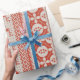 Värm helgdagar upp, genom att slå in dina gåvor i denna inspirerade design för mässaislen tröjan som innehåller snöflingor, järneken, julgranar, alla 8na av Santas ren och naturligtvis Rudolph att leda långt. Designat att se mer något liknande en verklig stickatröja. Detta papper är inte precis för att slå in gåvor! Du kan också använda det för scrapbooking, kortdanande, & annat hantverk projekterar. De använda färgerna är kräm- och röda.