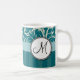 En seamless digital blommönster av juveln tonar kricka- och silverkräm överst, och åldriga randar för stil för vintagekricka- och aquamarinesatäng avbildar på grunden, med ett band överdrar med en anpassademonogramtext förseglar.