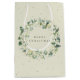 Elegant, krämfärgad, jul/högtid presentpåse med personligt meddelande. Påsen har en krans av handmålade snöbär och eukalyptus. All text är fullt redigerbar så att du enkelt kan ändra typsnitt, färg, storlek och ta bort eller flytta text. Olika storlekar på påsar och matchande artiklar finns tillgängliga i min butik.