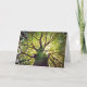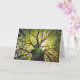 Detta foto presenterar en beskåda som tittar upp in i frodiga gröna grenar av det stora träd.