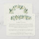 Ett krämfärgat platt kuvertkort för vigselinformation eller för vägbeskrivning om er mottagning är på en annan plats. Utformad med en elegant girland av handmålade snöbär och eukalyptus på framsidan och en krans på baksidan. All text är fullt redigerbar och de spridda prickarna på fram- och baksidan kan raderas innan beställning om önskas. Detta kort finns med alternativa botaniska mönster, i stående format och i olika färger. Vänligen se kollektionen i min butik för att se alla alternativ och matchande artiklar.
